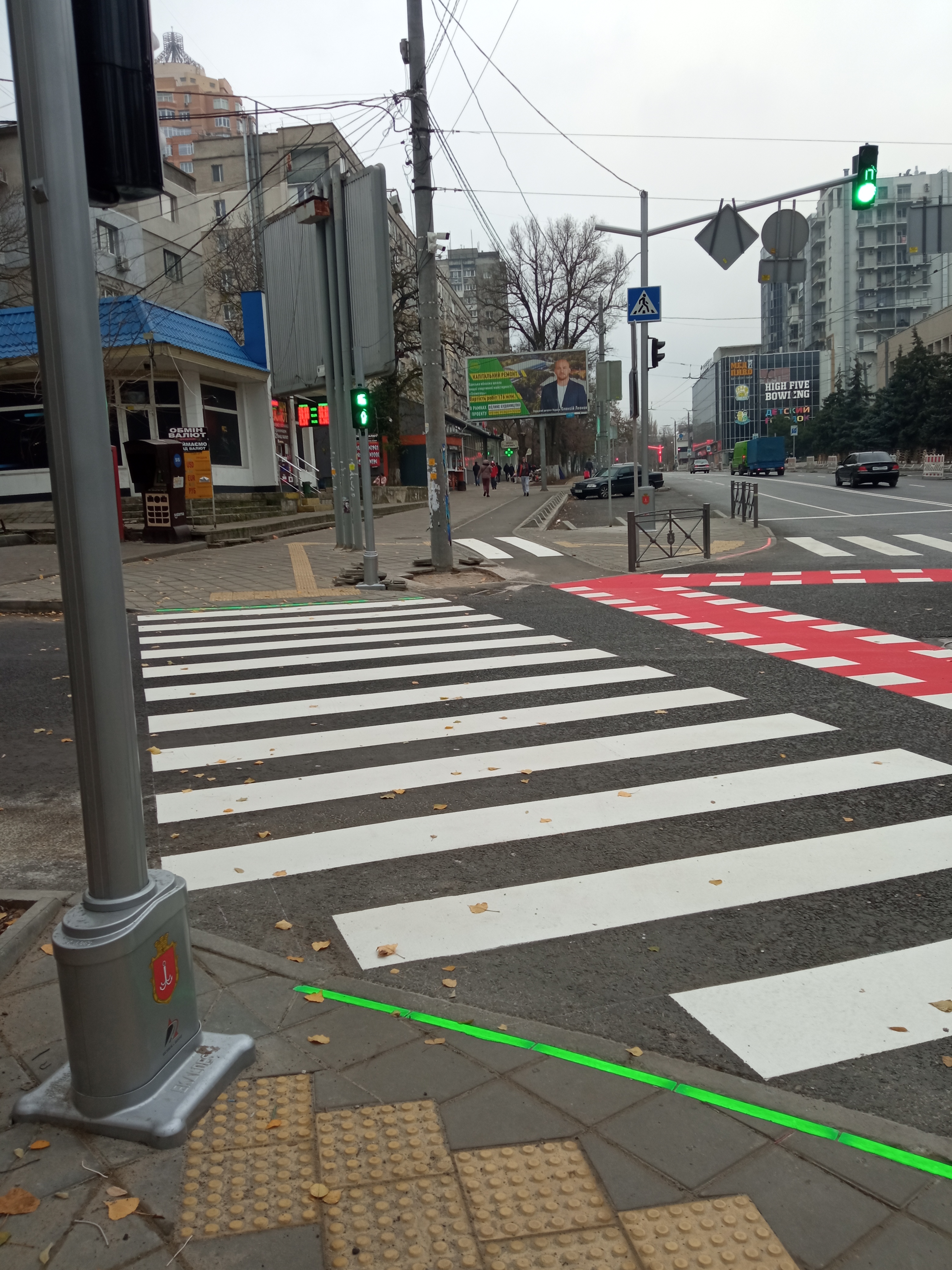 Ещё одно новшество — перед пешеходным переходом также сделана подсветка.